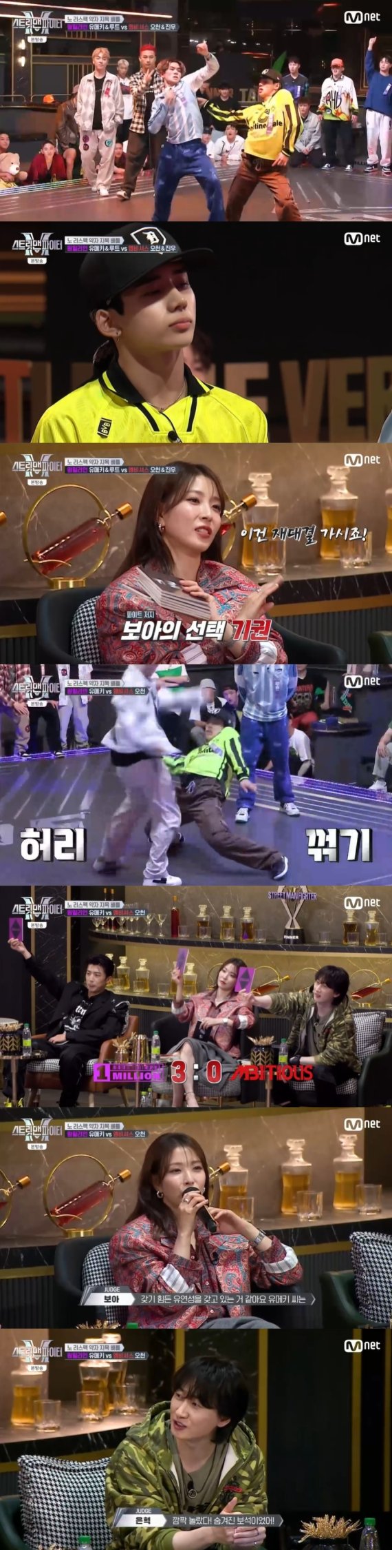 30일 오후 방송된 Mnet 예능 프로그램 '스트릿 맨 파이터'에서는 듀엣 배틀이 펼쳐진 가운데 원밀리언 유메키, 루트가 엠비셔스 오천, 진우와 경쟁했다.