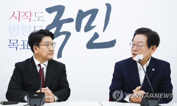 권 원내대표는 먼저 "'어대명'(어차피 대표는 이재명)이라는 말이 나올 정도로 압도적으로 승리한 것으로 안다. 드디어 이재명의 민주당이 됐다"면서 "이 대표 말씀처럼 민생문제 해결을 위해 여야가 머리를 맞대고 협치를 해야 한다"고 말했다.