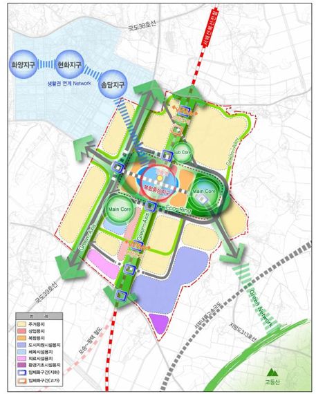 또 명품도시 조성을 위해 동서측에 대규모 중앙공원을 계획하고, 기반시설(철도·도로 등)로 단절되는 곳은 복합화 및 입체화를 통해 자연스럽게 연결될 수 있도록 구상했다.