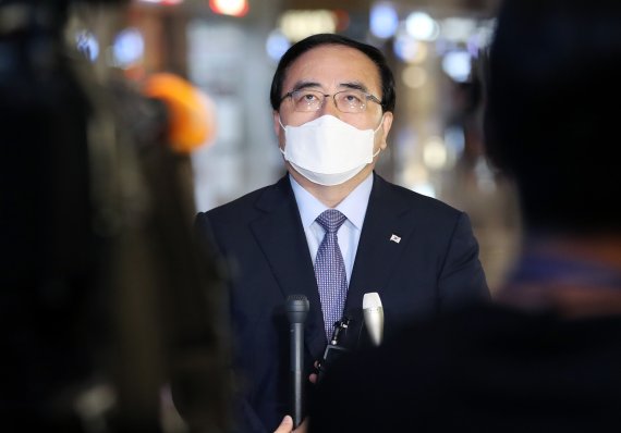 김성한 국가안보실장이 31일 저녁 인천국제공항 2터미널에서 한·미·일 안보실장 회의 참석 차 미국 하와이로 출국하기에 앞서 질의에 답하고 있다. 이번 회의는 윤석열 정부 출범 후 처음으로 개최되는 3국 안보실장 회의다. /사진=뉴스1