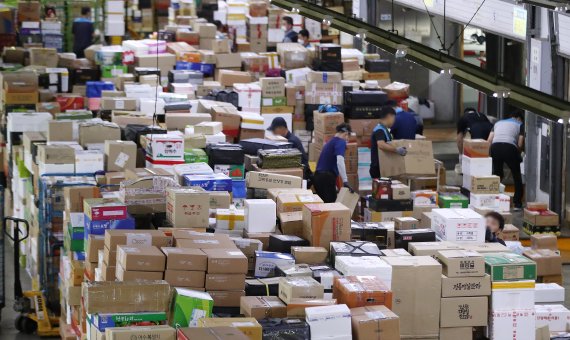 추석 명절을 앞둔 1일 서울 광진구 동서울우편물류센터에서는 집배원 등 직원들이 택배 분류로 분주한 모습을 보였다. 올 추석 명절 소포우편물은 약 1,917만개가 접수될 것으로 예상되고 있다.