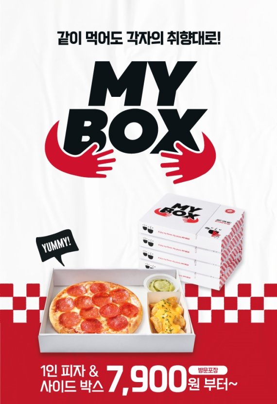 1인용 피자로 즐길 수 있는 메뉴는 알로하하와이, 오리지널슈프림, BBQ불고기, 허니버터옥수수, 페페로니, 웨지포테이토, 치즈 등 총 7종이다. 마이박스는 가볍게 피자헛의 메뉴를 즐길 수 있도록 7900원부터 판매한다.