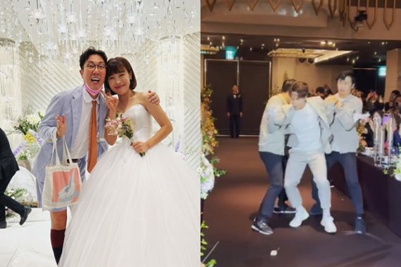 개그맨 허경환은 결혼식 난입 상황극을 선보였다. 쌍둥이 개그맨 이상호·이상민에게 끌려 나가 웃음을 줬다. 오나미와 허경환은 JTBC 예능물 '최고의 사랑'에서 가상 커플로 출연했다. 이날 김영철은 인스타그램에 "나미는 결국 입장하면서 울었다. 울어도 예쁘다"며 "허경환은 신랑입장 전 꽁트? 난입? 상황극? 결혼식 정말 #언밸런스 #울다가웃었다"고 남겼다. "헐리우드 셀럽 결혼식보다 재미있고 신나고 뭉클하고 좋다. 하객들고 울고 웃고, 뭉클한 결혼식 최고. 나미야 정말 축하하고 사랑한다. 신랑도 멋있다"고 덧붙였다.