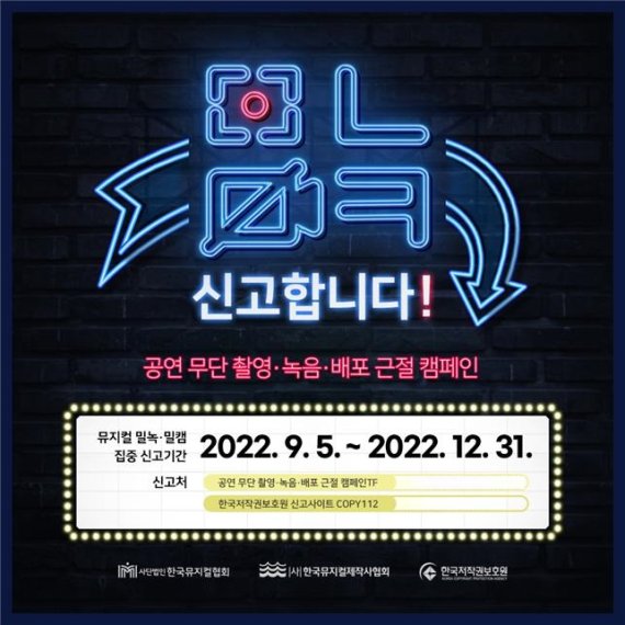 [서울=뉴시스] 박주연 기자 = 한국저작권보호원이 올해 연말까지 '뮤지컬 밀녹·밀캠 집중 신고기간'을 운영한다.