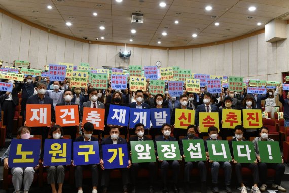 (서울=뉴스1) 윤다정 기자 = 서울 노원구는 6일 오후 2시 노원구청 6층 소강당에서 '노원 재건축·재개발 신속추진단' 발족식이 열렸다고 밝혔다.