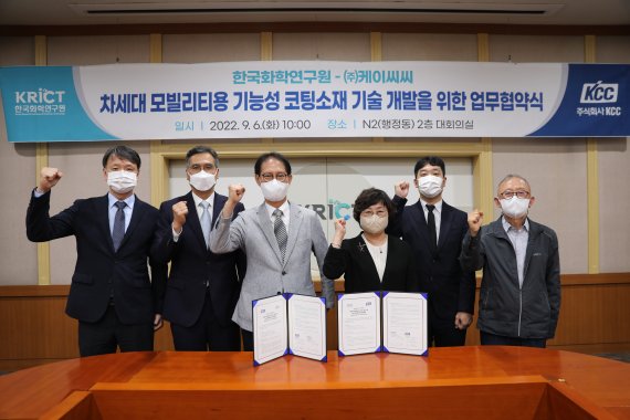 김범성 KCC 중앙연구소장은 "친환경 및 자율주행 모빌리티 시장의 확대에 따라 차세대 모빌리티 기능성 코팅소재 개발이 필요하다"며 "KCC의 축적된 도료기술과 한국화학연구원의 요소기술의 융합으로 차별화된 자동차 코팅소재를 개발해 글로벌 모빌리티 도료 시장을 선도하겠다"고 밝혔다.