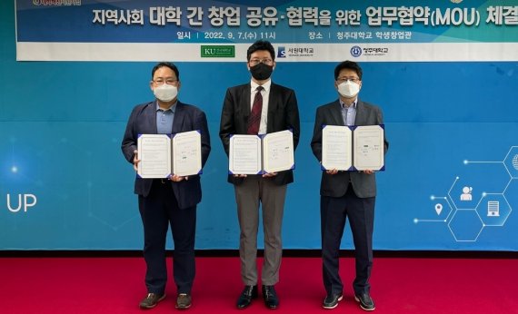 (청주=뉴스1) 이성기 기자 = 청주대학교는 건국대학교 글로컬캠퍼스, 서원대학교와 창업 공유·협력을 위한 업무협약을 했다고 7일 밝혔다.