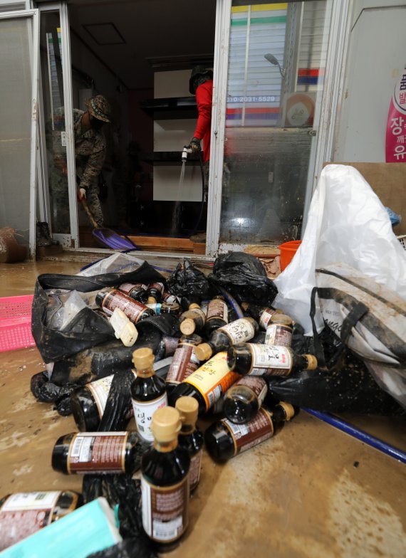 지난 6일 태풍이 물러간 지 이틀이 지난 8일 오전 농촌마을인 오천읍 갈평리의 한 농가주택에는 집주인인 김모(75)씨가 연신 물걸레로 토사로 인해 지저분해진 안방의 장판 바닥을 훔치느라 여념이 없었다.