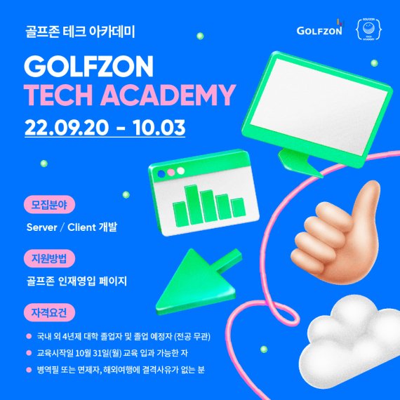 모집 분야는 클라이언트 개발, 서버 개발 두 가지다. 합격자는 6개월간 서버·클라이언트 개발을 위한 C개발자 양성 교육 과정에 무료로 참여할 수 있다. 자체 기준에 부합한 우수 수료자에게는 골프존 정규직 입사 기회가 주어진다.