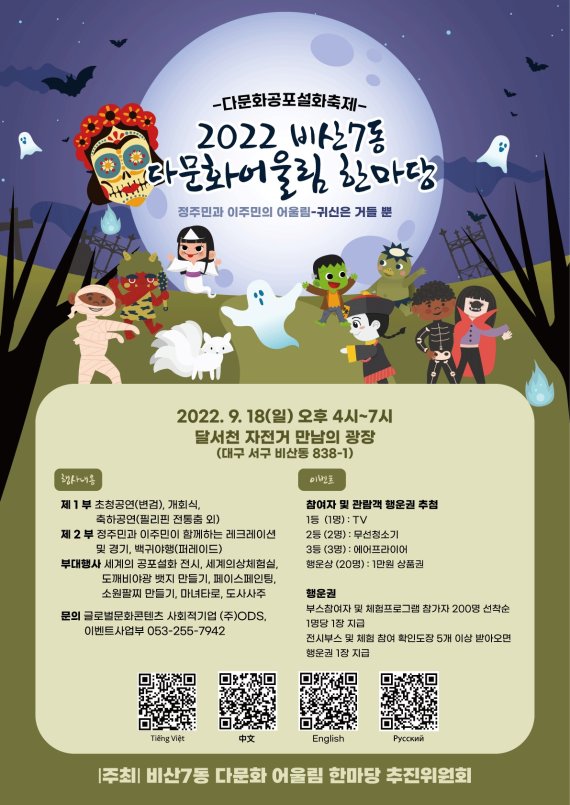 달서천 자전거 만남의 광장에서 개최되는 이번 행사는 국가별 공포와 설화라는 컨셉으로 진행될 예정이다.