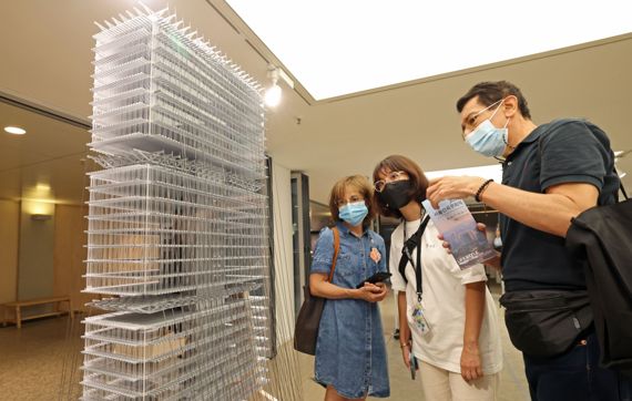 14일 서울 중구 서울도시건축전시관에서 개막한 ‘서울건축문화제’에서 관람객들이 전시 작품을 살펴보고 있다. 올해는 'Lifestyle : Ways of Living'을 주제로 코로나19 팬데믹 이후 변화한 우리 생활과 공간 전반을 고찰하는 전시, 프로그램을 25일까지 선보인다. 사진=김범석 기자
