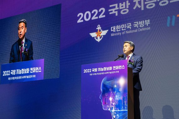 (서울=뉴스1) 박응진 기자 = 국방부가 14일 '2022 국방 지능정보화 컨퍼런스'를 열어 인공지능(AI) 과학기술강군 육성을 위해 첨단기술을 국방 분야에 적용할 수 있는 방안을 산업계·학계·연구기관·군 등 각계 전문가들과 함께 논의했다.