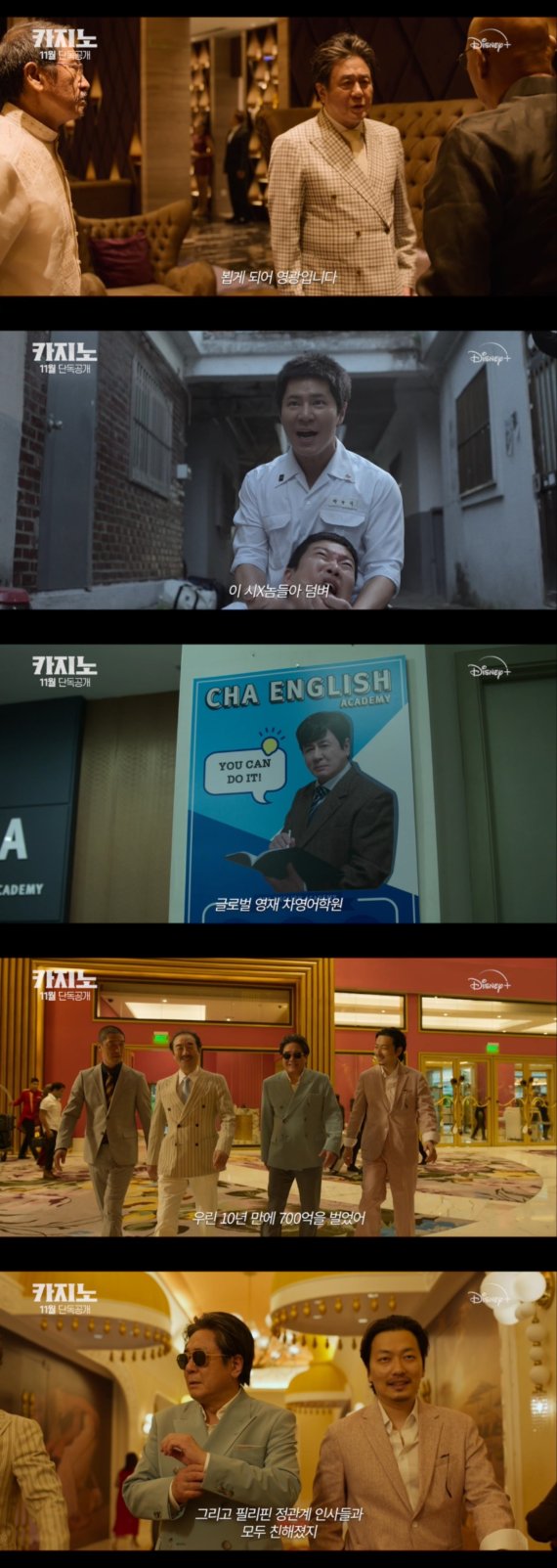 디즈니+는 15일 '카지노'의 11월 공개 확정을 알리며 이와 함께 주연 배우 최민식, 손석구, 이동휘, 허성태 등의 모습이 담긴 티저 예고편을 공개했다.