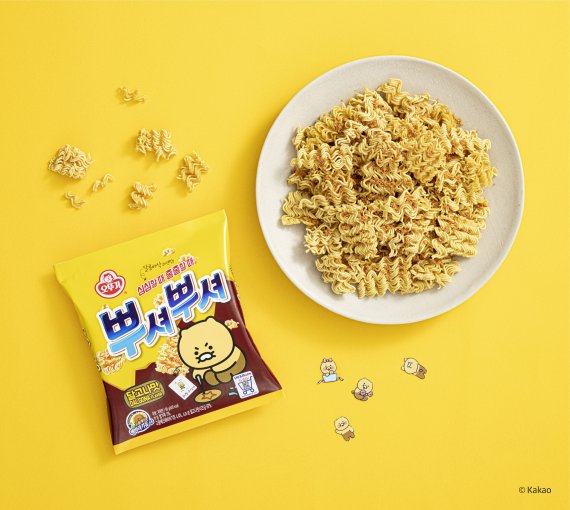 [서울=뉴시스] 김동현 기자 = 오뚜기가 카카오프렌즈와 손잡고 뿌셔뿌셔 신제품 '달고나맛'을 선보인다고 15일 밝혔다. 신제품의 면은 바삭하고 달달한 라면땅맛을 낸다. 스프는 달콤한 달고나맛을 재현한 것이 특징이다.