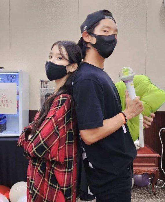 이준기는 19일 자신의 인스타그램에 아이유와 함께 등을 맞대고 찍은 사진을 올렸다. 또 그는 아이유 응원봉을 들고 공연장 앞에서 벅찬 듯한 포즈도 취해보였다.