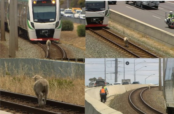 이 떠돌이 양은 교통 정체를 유발한 이후 도로의 차들을 피해 바로 옆의 선로에도 올라갔다.