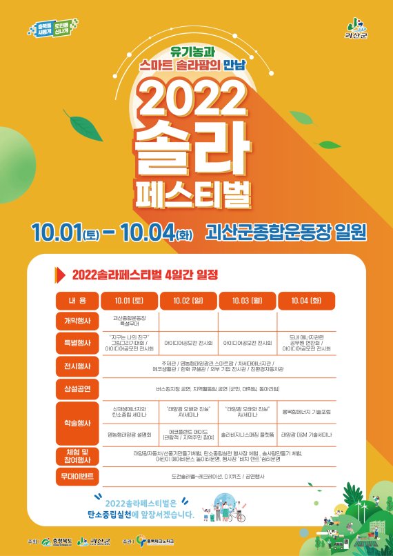 [청주=뉴시스] 천영준 기자 = 충북도는 10월 1일부터 4일까지 괴산군 종합운동장에서 제11회 솔라페스티벌을 연다고 25일 밝혔다.