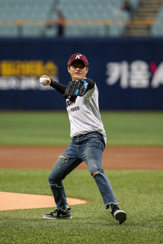 [서울=뉴시스]장인영 인턴 기자 = 가수 김기태가 야구장에서 활약을 펼쳤다.