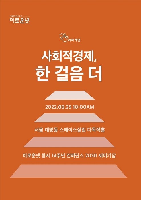 이로운넷은 오는 29일 '사회적경제, 한 걸음 더'를 주제로 창사 14주년 사회가치 콘퍼런스 '2030세이가담'을 개최한다고 26일 밝혔다.