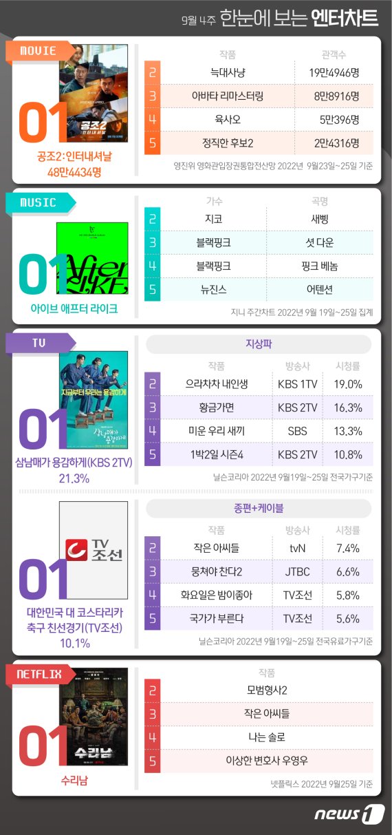◇ OTT=드라마 '수리남' 1위(넷플릭스 9월25일 기준)