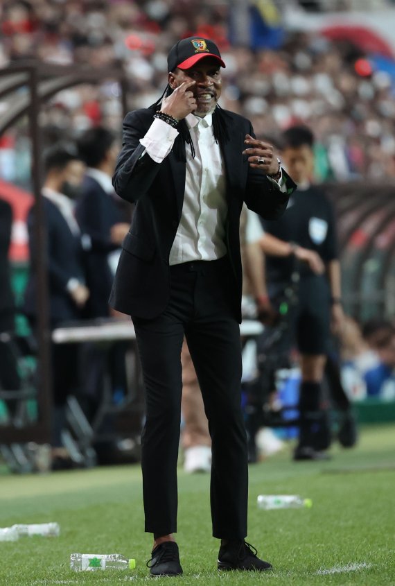 (서울=뉴스1) 이재상 기자 = 리고베르 송 카메룬 축구대표팀 감독이 태극전사들의 경기력에 엄지를 세웠다. '벤투호'와 함께 카타르 월드컵 본선 H조에 속한 가나와의 승부에 대해선 "좋은 경기가 될 것이다. 누가 이길지 예상하기 쉽지 않다"고 말을 아꼈다.