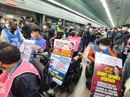 전장연은 이날 오전에도 5호선 광화문역에서부터 열차에 탑승해 국회의사당역으로 향하며 출근길 시위를 벌였다. 회원들이 여의도역까지 5호선 역마다 모두 내렸다가 다시 타는 방식으로 시위해 5호선 방화 방면 운행이 56분 지연됐다.