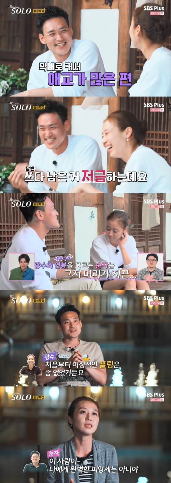 광수와 순자는 솔직한 대화를 나눴다. 광수는 "막내로 커서 애교가 많다. 상상이 잘 안되겠지만 집에 있으면 춤추고 그런다.