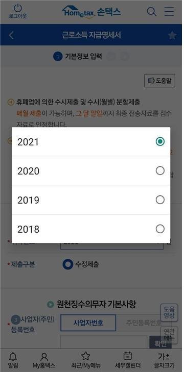 이밖에도 홈택스의 모바일 앱 '손택스'에서 5년치 사업소득 지급명세서 제출내역이 조회되지 않기도 했다. 국세청은 손택스는 아직 홈택스에 비해 미비점이 있어 발견하는 대로 개선하고 있다고 김 의원실에 답변했다.
