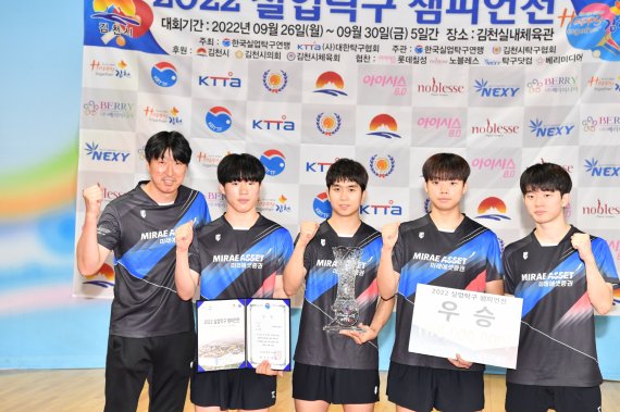 미래에셋증권은 30일 김천실내체육관에서 막을 내린 2022 실업탁구챔피언전 남자단체 결승에서 한국수자원공사를 맞아 3-2로 승리했다.