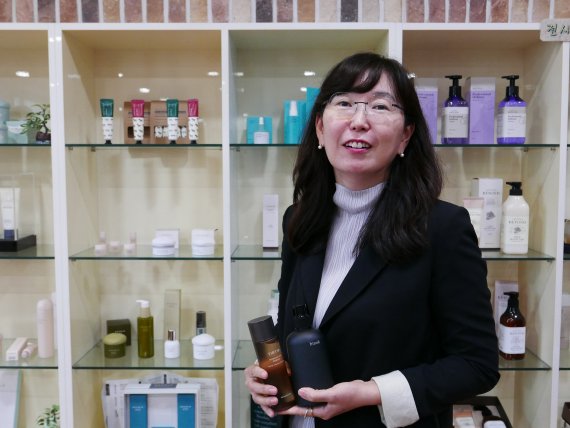 김정미 연구소장은 "2016년부터 총 293개의 제품이 제주화장품인증을 받았고 그중 65%는 우리가 개발·생산했다"며 "최근 제주의 향, 원료, 버려지는 자원을 활용한 탈모완화 물질의 특허 등록을 진행 중"이라고 설명했다.