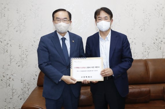 고양시는 지난달 30일 킨텍스에서 열린 한국 문화원 연합회 창립 60주년 기념식 환담자리에서 문화체육관광부에 한국예술종합학교 고양시 이전 제안서를 전달했다고 4일 밝혔다.