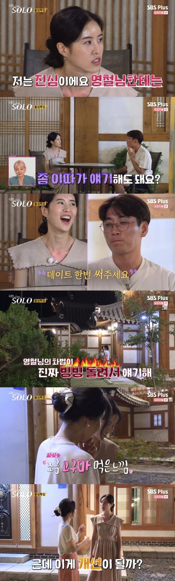 이후 현숙은 영숙에게 영철과의 대화에 대해 전했다. 현숙은 영숙에게 "영철님 화법이 진짜 빙빙 돌려서 얘기한다, 진짜 집중해야한다, 지금은 듣지만 이게 될까? 고구마 먹은 느낌이다"라고 말했다. 이어 현숙은 "무섭더라, 대화의 방식, 이게 개선이 될까?"라고 덧붙였다.