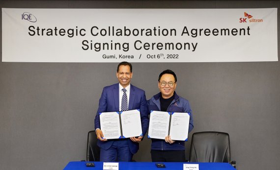 SK실트론은 지난 6일 경북 구미 본사에서 글로벌 에피택셜(Epitaxial) 웨이퍼 제조사인 영국 IQE와 전략적 협력 협약(SCA)을 체결했다고 밝혔다.
