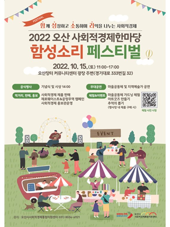 [오산=뉴시스] 정숭환 기자 = 오산시가 15일 오산장터 커뮤니티센터 광장에서 오산 사회적경제 한마당 '함성소리 페스티벌'을 개최한다.