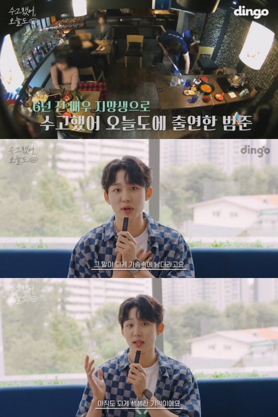 공개된 영상 속 서범준은 "'수고했어 오늘도' 출연이 벌써 6년 전이라는 게 믿어지지 않을 정도로 생생하다. (유지태를 보는 순간) 몸과 머리가 고장 난 느낌이 들었다. 다시 생각해도 감동적이고 설렜던 순간이었다"며 지난 날을 회상했다.
