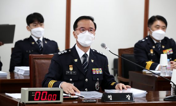 김 청장은 12일 서울 종로구 내자동 청사에서 열린 국회 행정안전위 국감에 출석해 문진석 더불어민주당 의원(충남 천안시갑)의 건진법사 이권 개입 의혹 수사 가능성과 관련해 '인지 수사를 무슨 근거로 하느냐'는 질문에 이같이 답했다.