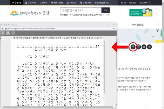 (서울=뉴스1) 박동해 기자 = 서울 금천구는 구 홈페이지에서 시각장애인을 위한 전자점자 생성 서비스를 제공한다고 18일 밝혔다.
