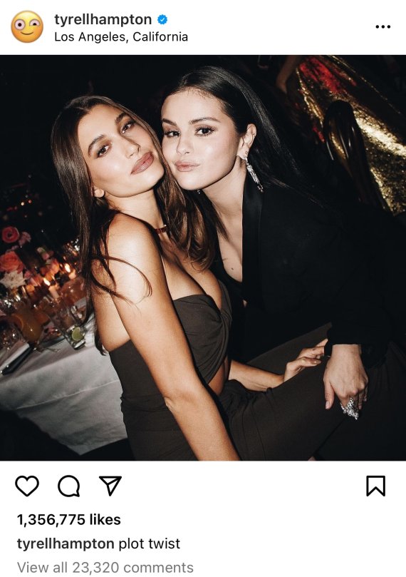 셀레나 고메즈·헤일리 비버, 친밀한 포즈로 사진 촬영해