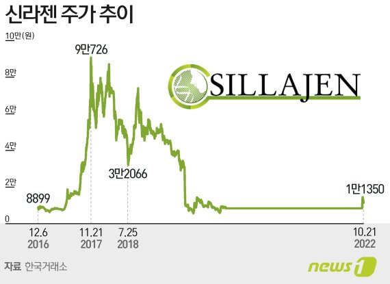 신라젠은 지난 2018년 기술특례기업으로 상장했다. '펙사벡'이라는 면역함암제 후보물질 임상 소식으로 주가는 장중 15만2300원까지 올라 시가총액 10조원을 돌파, 코스닥 시총 2위까지 올랐다.