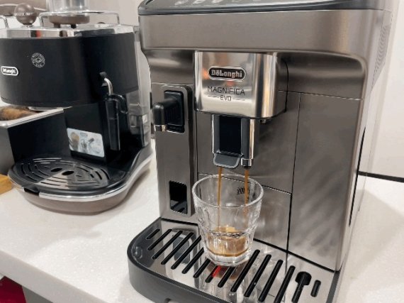'집에서 커피머신만큼 자주 쓰는 게 있을까'라고 합리화하며 전자동 커피머신인 드롱기 마그니피카 에보 라떼를 구매했다. 드롱기의 다양한 커피머신 중 이 제품을 선택한 이유는 작동이 쉬워 보였기 때문이다. 라떼 마키아토부터 카푸치노까지 상단 조작부에 뽑을 수 있는 커피 이미지와 글씨가 함께 적힌 점이 인상적이었다.