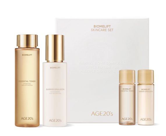 AGE20’s 바이옴리프트 스킨케어는 ▲세안 후 첫 단계 바르는 ‘바이옴리프트 에센셜 토너’ ▲피부 유∙수분 밸런스를 케어 해주는 ‘바이옴리프트 배리어 에멀젼’ 2종으로 구성됐다.