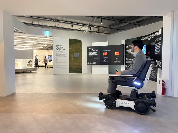 25일 KT에 따르면 오는 11월 11일까지 DDP 디자인쇼룸과 디자인홀을 방문한 관람객들은 자율주행 스마트로봇체어를 타고, 디자인랩 3층 디자인홀 공간에서 대체불가능토큰(NFT) 특별전 등을 관람할 수 있다.