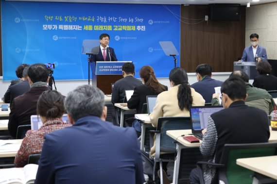 최교진 세종교육감은 이날 기자회견을 열고 이 같은 내용이 담긴 '모두가 특별해지는 세종 미래지음 고교학점제 추진' 계획을 발표했다.