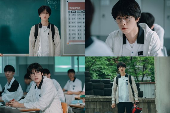 공개된 스틸컷에는 칠판 앞에서 다소 경직된 표정으로 서 있는 오범석의 모습이 담겼다. 그는 어딘지 모르게 위축된 느낌이다. 교복 위로 단정한 아이보리색 카디건을 입은 그의 어깨도 잔뜩 주눅이 들어 보인다.