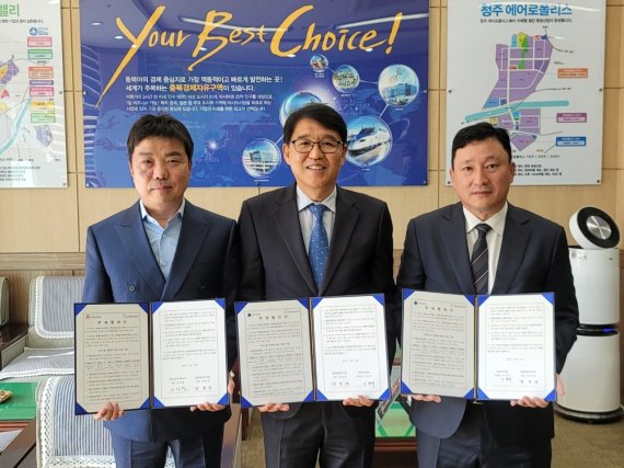 충북경제자유구역청은 26일 ㈜에스에이치파트너와 호텔건립(사업비 230억원), ㈜하나온개발과 오피스텔 건립(사업비 5600여억원) 협약을 했다.