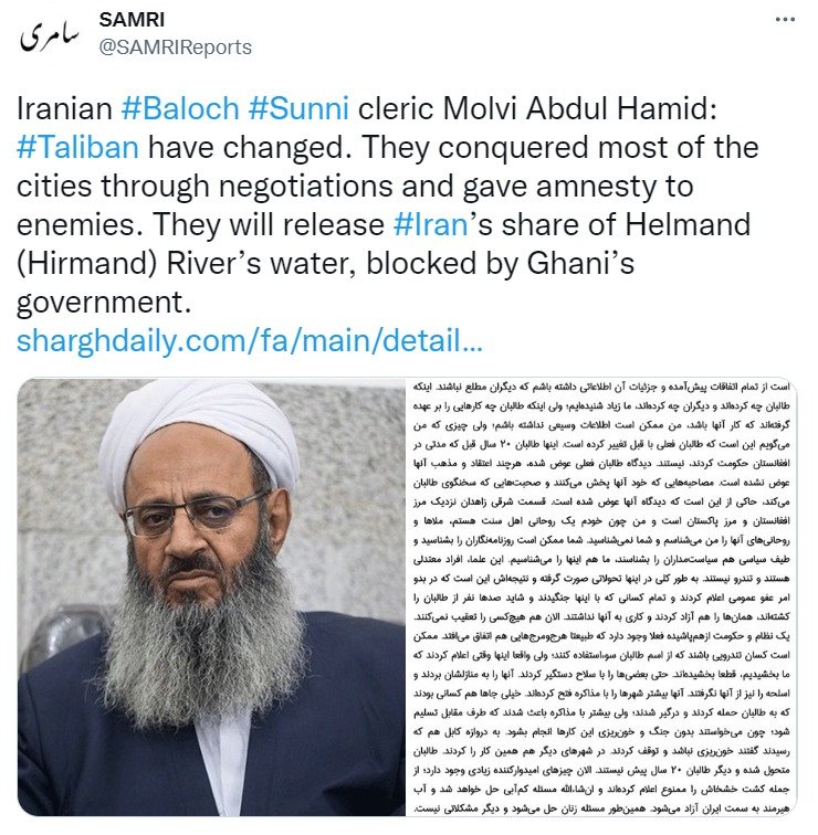 인권 신장과 독재 타도 등을 외치는 이란 국민들 사이에서 성직자는 '수니파 권리 신장'이라는 이란 내 다양성 수용을 요구하고 나서서다. 이란은 시아파가 대부분으로 인구 약 8400만 명 중 단 5%만이 수니파다.