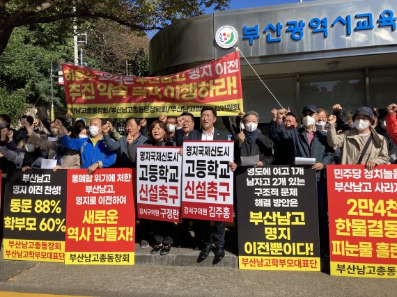 부산시교육청은 지난 8월 부산남고 학부모들로부터 학교를 강서구로 대체 이전하는 방안에 대한 동의를 얻고 '명지고등학교 설립안'을 교육부 중앙투자심사를 신청했다.