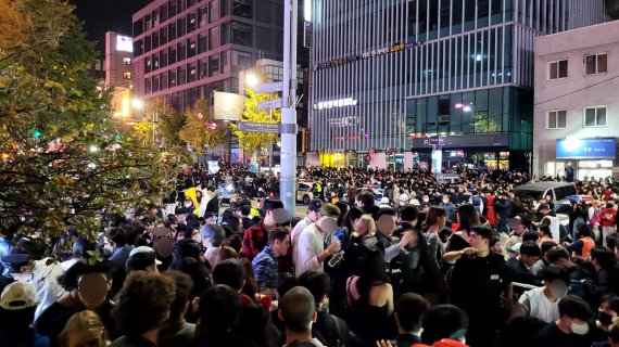 3년 만에 마스크를 쓰지 않는 핼러윈을 앞둔 토요일밤을 맞아 한국에서 '핼러윈의 상징'과 같은 이태원에 수만 명이 한꺼번에 몰려 발 디딜 틈이 없을 정도였다.