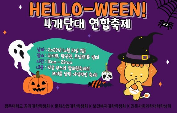 광주대는 이날 빛축제 테마공원에서 할로윈 감성을 표현하는 다양한 유령, 호박 캐릭터들을 활용한 할로윈 축제를 마련, 지역민과 재학생들과 함께 다양한 행사를 진행할 예정이었다.