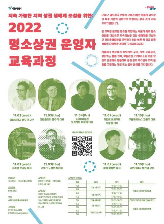 서울시는 다음달 2일부터 10일까지 서울시청 시민청에서 '명소상권 운영자 교육'을 개최한다고 31일 밝혔다.